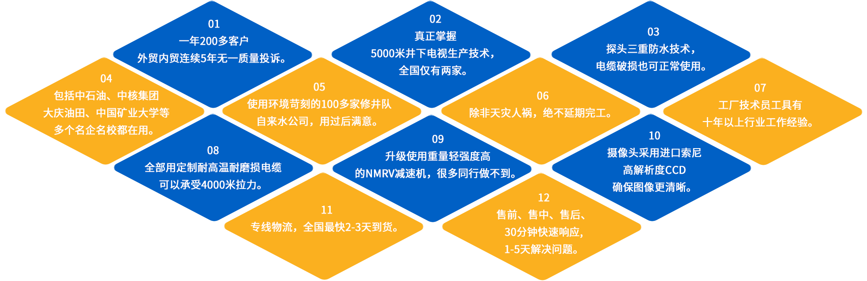 朋友本身就是行業(yè)內(nèi)的,對井下電視行業(yè)亂象深惡痛絕,也知道客戶對假冒偽劣,以次充好設(shè)備的咬牙切齒,現(xiàn)在我們自己開公司,做事必 須對得起自己的良知,真心真意做產(chǎn)品。精心選材,規(guī)范工藝流程,創(chuàng) 新三重防 水技 術(shù)等。